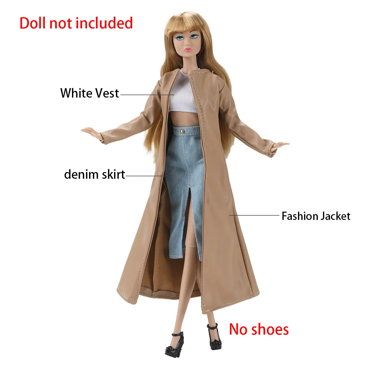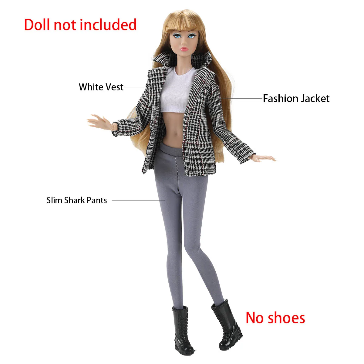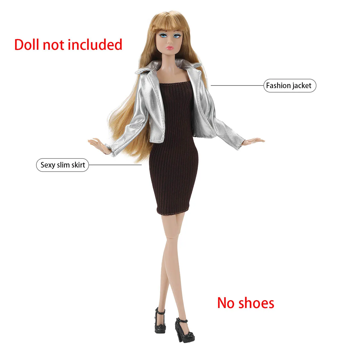 30cm Supermodel Doll Clothes Elegant/Mature Women Dress Up Fashion Leather Jacket+Vest+Skirt Set For 1/6 Doll Career Girls Wear