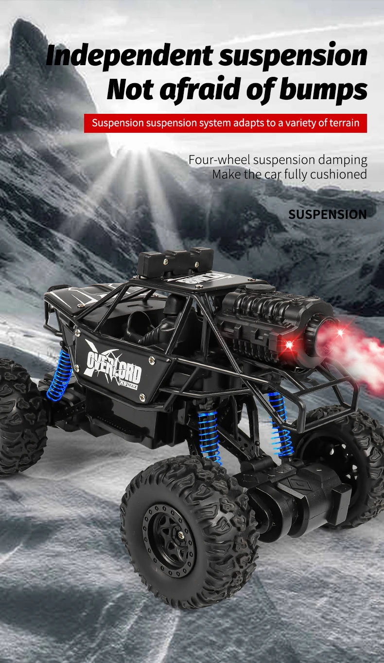New Spray 4WD Alloy Remote Control Car 1:18 Scale With Damping System Durable LED Lights Off Road RC Buggy Truck Teen Kids Gifts