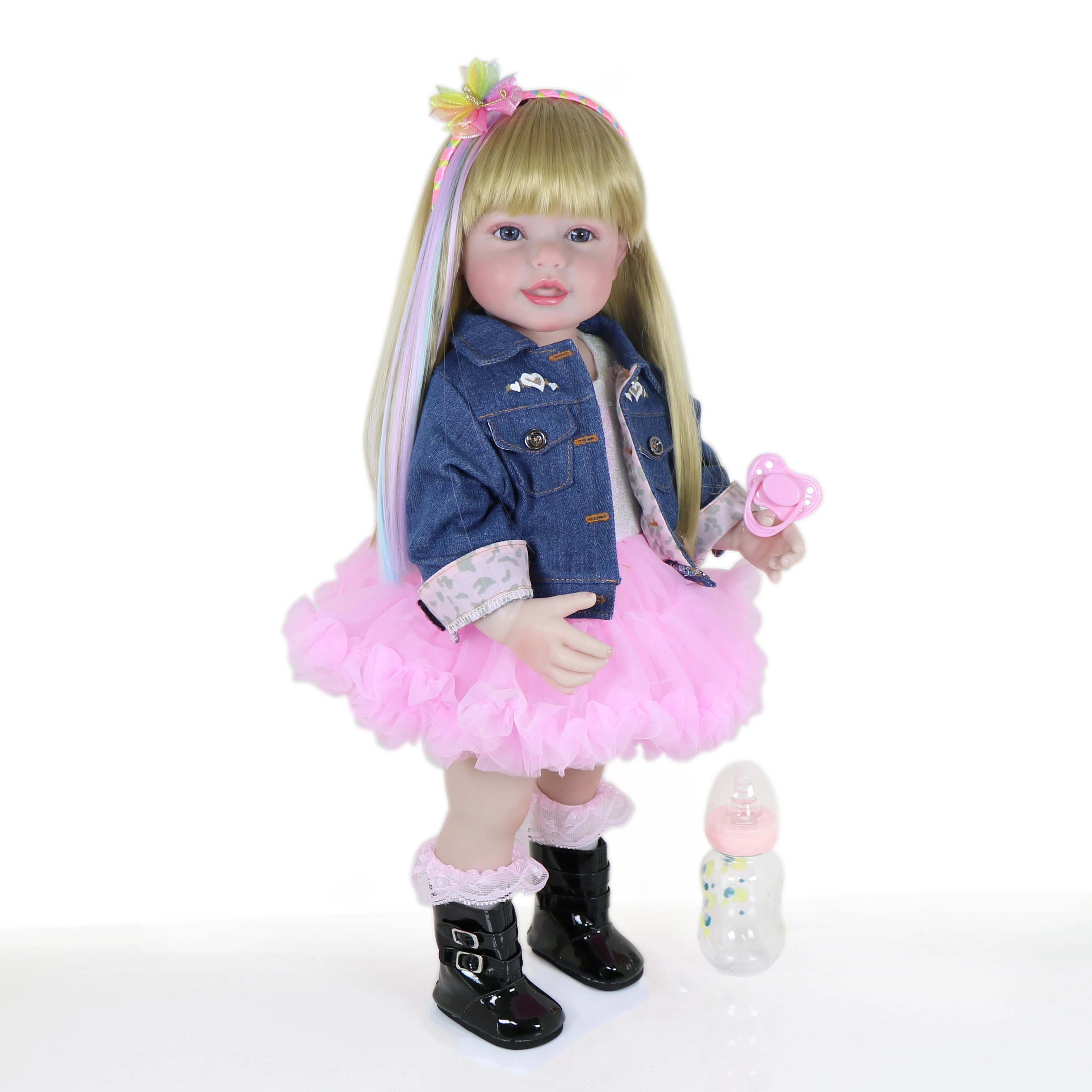 Reborn Toddler Stand Doll -22 inch Fashions Girl with 3D Painted Skin on face full vinyl with Blonde wigs Christmas Gift